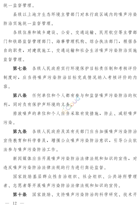第十三届全国人大常委会第三十次会议对《中华人民共和国噪声污染防治法(草案)》进行了审议。现将《中华人民共和国噪声污染防治法(草案)》在中国人大网公布,社会公众可以直接登录中国人大网(www.npc.gov.cn)提出意见,也可以将意见寄送全国人大常委会法制工作委员会(北京市西城区前门西大街1号,邮编:100805。信封上请注明噪声污染防治法草案征求意见)。征求意见截止日期:2021年9月18日。