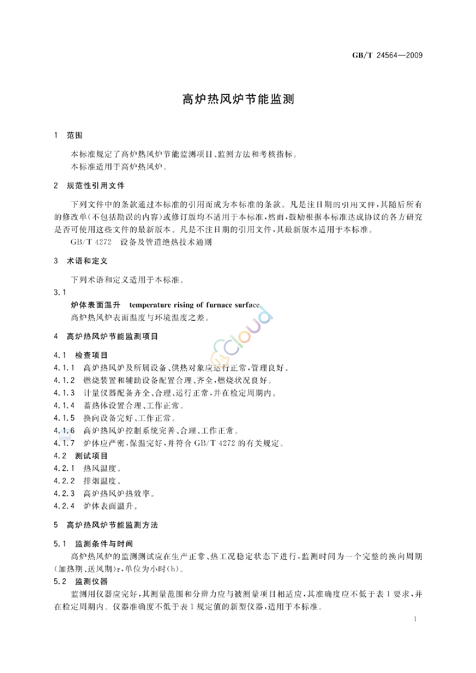 本标准规定了高炉热风炉节能监测项目﹑监测方法和考核指标。 本标准适用于高炉热风炉。