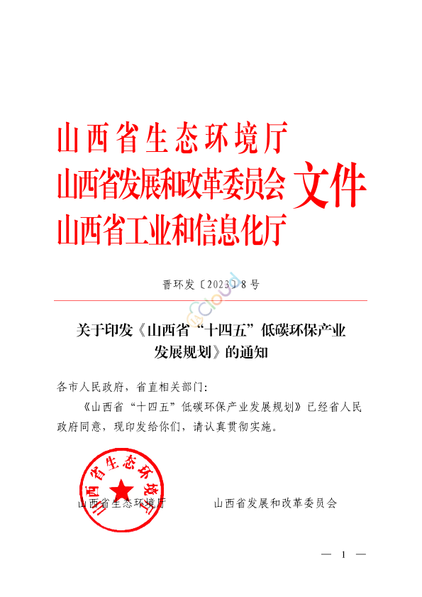 各市人民政府,省直相关部门: 《山西省“十四五”低碳环保产业发展规划》已经省人民政府同意,现印发给你们,请认真贯彻实施。