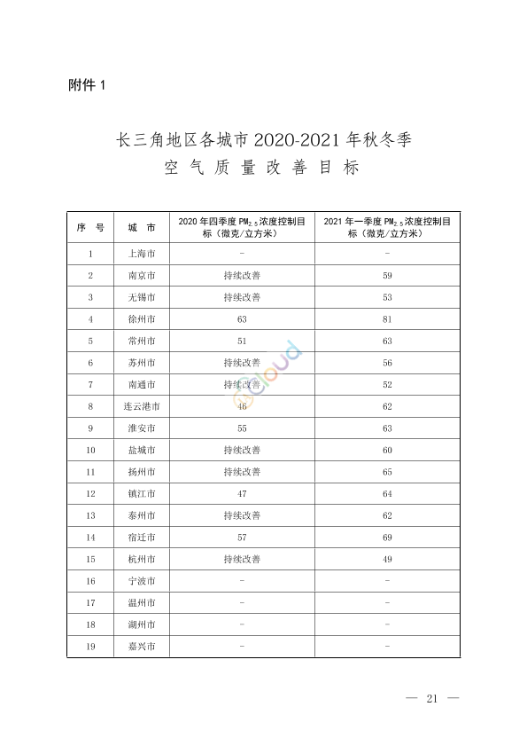 南京、无锡、徐州、常州、苏州、南通、连云港、淮安、盐城、扬州、镇江、泰州、宿迁、杭州、宁波、温州、湖州、嘉兴、绍兴、金华、衢州、舟山、台州、丽水、合肥、淮北、亳州、宿州、阜阳、蚌埠、淮南、滁州、六安、马鞍山、芜湖、宣城、铜陵、池州、安庆、黄山市人民政府,中国石油天然气集团有限公司、中国石油化工集团有限公司、中国海洋石油集团有限公司、中国国家铁路集团有限公司: 现将《长三角地区2020-2021年秋冬季大气污染综合治理攻坚行动方案》印发给你们,请遵照执行。 生态环境部发展改革委 工业和信息化部公安部 财政部住房城乡建设部 交通运输部商务部 市场监管总局能源局 上海市人民政府江苏省人民政府 浙江省人民政府安徽省人民政府 2020年10月30日