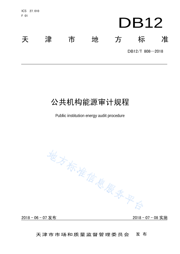 本标准规定了公共机构能源审计的审计程序、审计内容、审计方法和审计报告编写内容。 本标准适,用于天津地区公共机构的能源审计工作,其他用能单位的能源审计工作可参照执行。