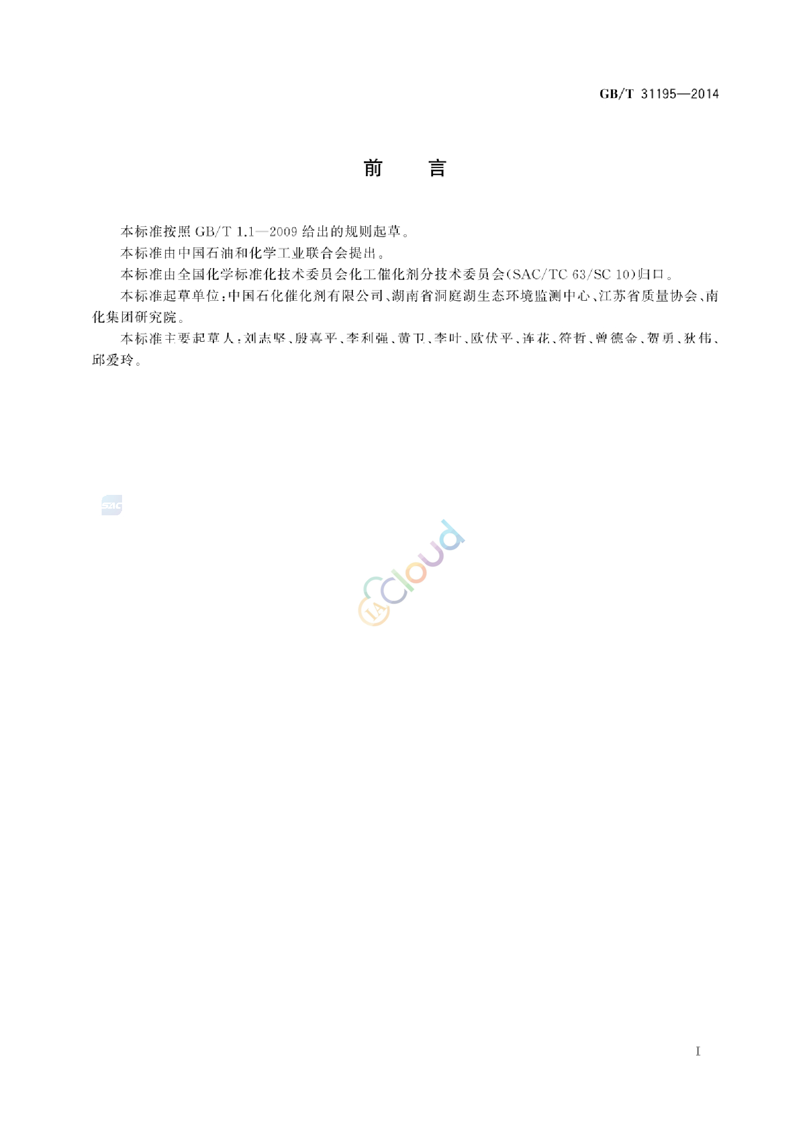 本标准按照GB/T1.1——2009给出的规则起草。 本标准由中国石油和化学工业联合会提出。 本标准由全国化学标准化技术委员会化工催化剂分技术委员会(SAC/TC 63/SC 10)归口。