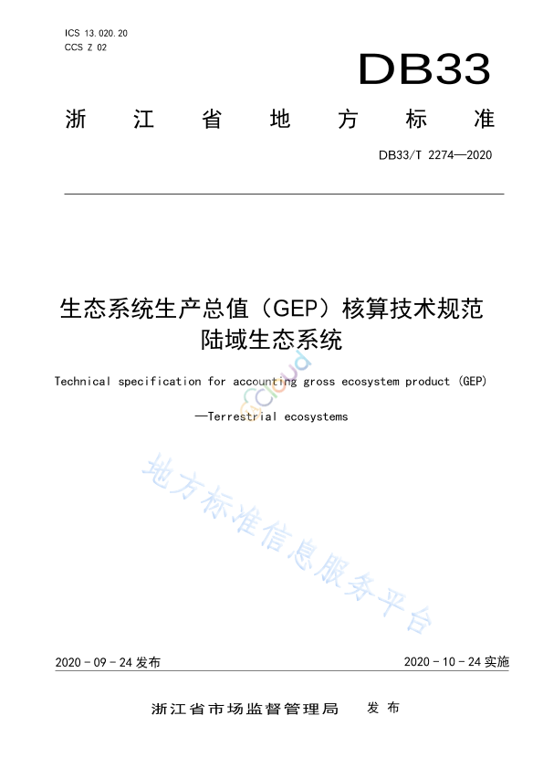 本标准规定了陆域生态系统生产总值(GEP)的核算步骤,生态产品功能量核算方法、定价方法和价值量核算方法等的要求。 本标准适用于陆域生态系统生产总值(GEP)核算。