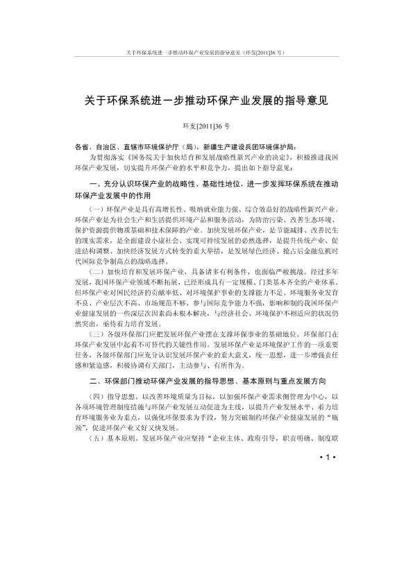 为贯彻落实《国务院关于加快培育和发展战略性新兴产业的决定》,积极推进我国环保产业发展,切实提升环保产业的水平和竞争力,提出如下指导意见: