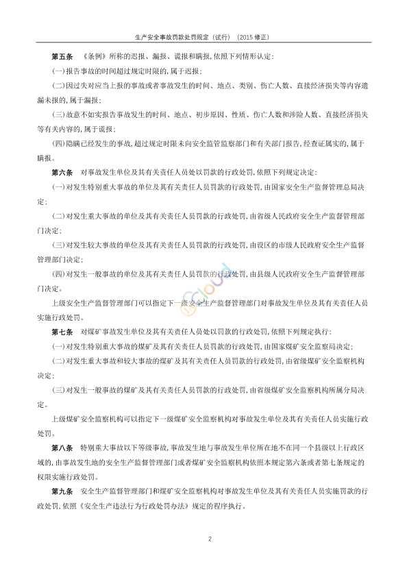 (2007年7月12日国家安全生产监督管理总局令第13号发布 根据2011年9月1日国家安全生产监督管理总局令第42号《国家安全监管总局关于修改罚款处罚暂行规定>部分条款的决定》第一次修正 根据2015年4月2日国家安全生产监督管理总局令第77号《国家安全监管总局关于修改罚款处罚暂行规定>等四部规章的决定》第二次修正)