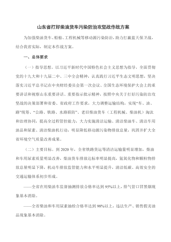 各市人民政府,各县(市、区)人民政府,省政府各部门、各直属机构,各大企业: 《山东省打好柴油货车污染防治攻坚战作战方案》已经省政府同意,现印发给你们,请认真组织实施。 山东省人民政府办公厅 2019年2月8日 (此件公开发布)