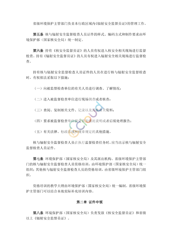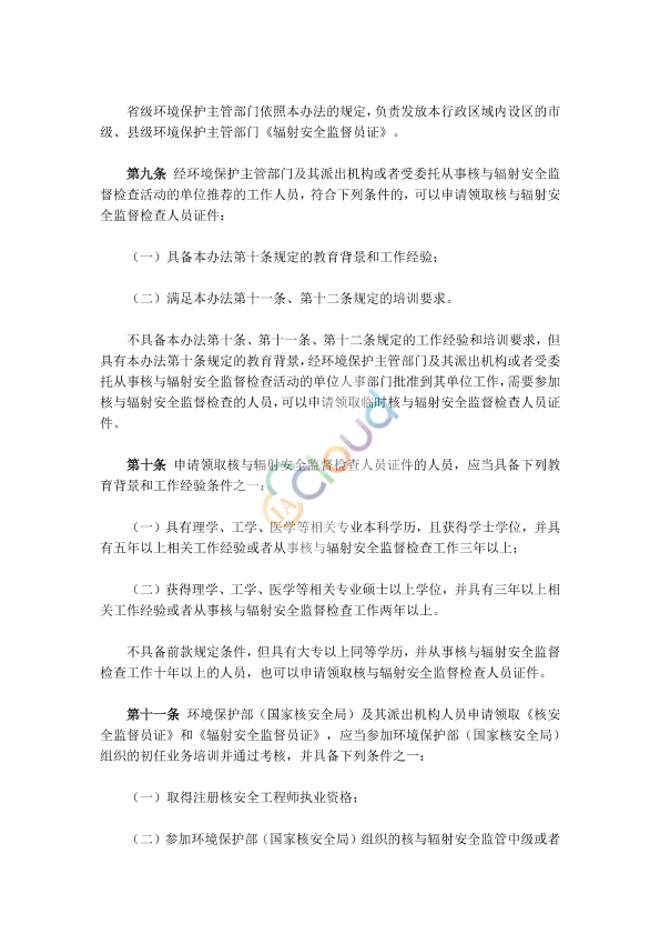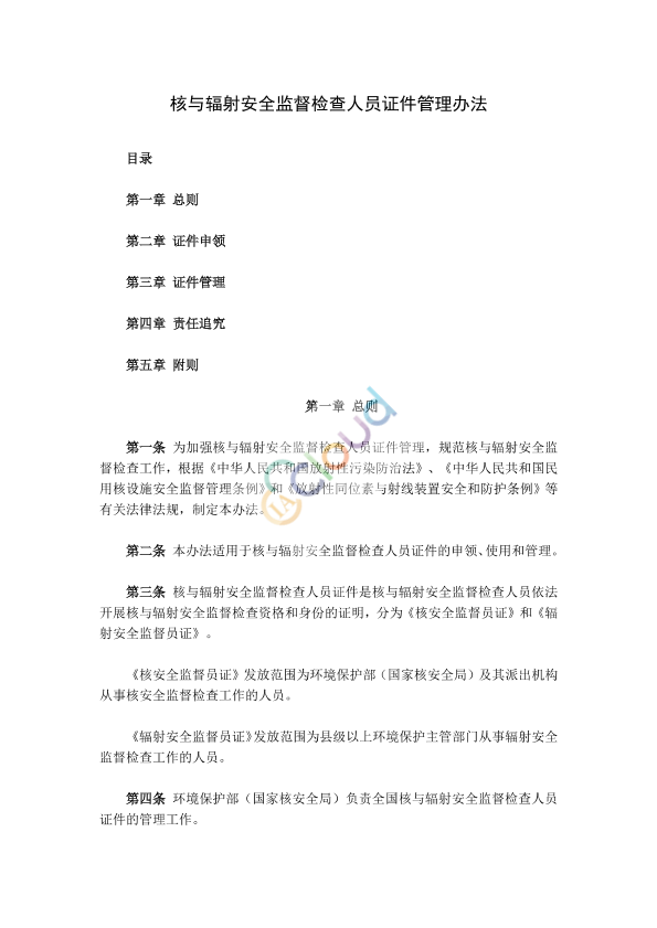 • 适用范围:规范核与辐射安全监督检查人员证件的申领、使用和管理