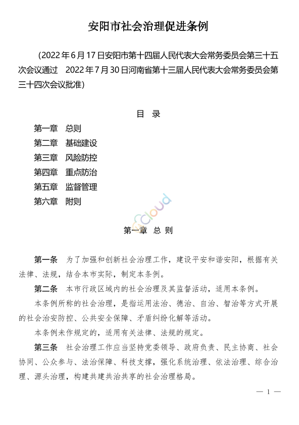 为了加强和创新社会治理工作,建设平安和谐安阳,根据有关法律、法规,结合本市实际,制定本条例。