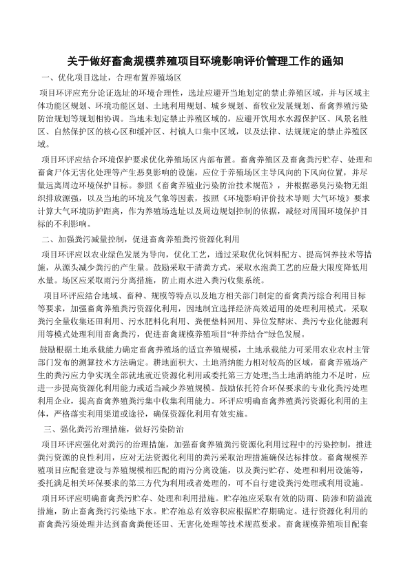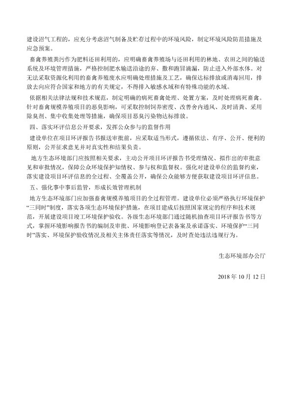 各省、自治区、直辖市环境保护厅(局),新疆生产建设兵团环境保护局: 为打好污染防治攻坚战,改善农业农村生产生活环境,充分发挥环境影响评价制度的预防作用,现将畜禽规模养殖建设项目环境影响评价(以下简称项目环评)管理有关事项通知如下。