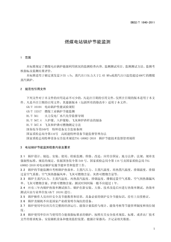 本标准依据《中华人民共和国节约能源法》、国务院令第549号《特种设备安全监察条例》及国家质检总局令第116号《高耗能特种设备节能监督管理办法》等法律法规,结合我省电站锅炉的设计、制造和使用的实际情况而制定。 本标准的编写贯彻了GB/T1.1-2009《标准化工作导则 第1部分:标准的结构和编写》。 本标准由江苏省徐州质量技术监督局提出。 本标准由江苏省电力标准化专业技术委员会归口。 本标准起草单位:徐州市特种设备安全协会、江苏省电力标准化专业技术委员会、徐州电力试验中心、徐州市标准化协会、江苏四方锅炉有限公司、徐州市发电技术研究所。 本标准主要起草人:孙光圣、梁国安、张庆、赵荣光、季本军、权勇、段续强、宦英姿、陈晓辉。 本标准于2011年06月20日发布,2011年08月20日实施。