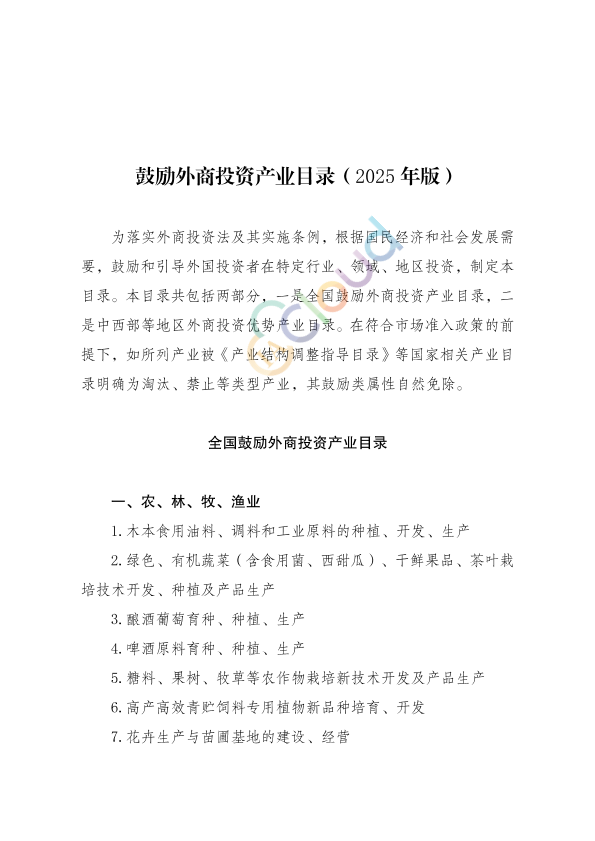 《鼓励外商投资产业目录(2025年版)》已经国家发展和改革委员会第22次委务会议审议通过和商务部审签,经国务院同意,现予以发布,自2026年2月1日起施行。2022年10月26日国家发展改革委、商务部发布的《鼓励外商投资产业目录(2022年版)》同时废止。 国家发展和改革委员会主任:郑栅洁 商务部部长:王文涛 2025年12月15日