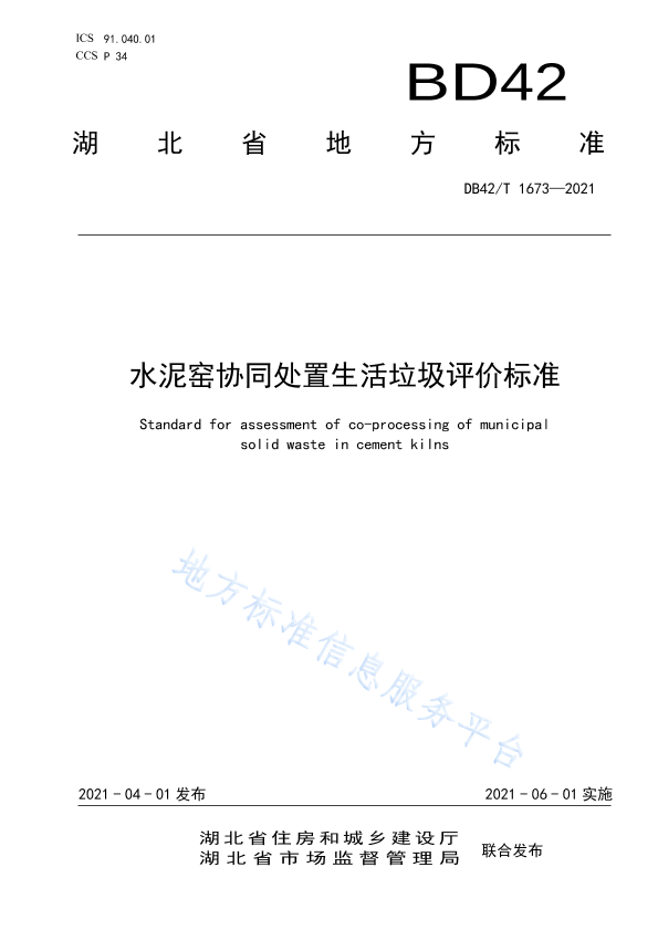 本文件规定了水泥窖协同处置生活垃圾工程评价的基本规定和评价方法。 本文件适用于湖北省新建及改扩建,并正式投入运行满一年以上的水泥窑协同处置生活垃圾工程,分期建设的水泥窑协同处置生活垃圾工程,可对已建成并正式投入运行满一年的分期工程进行评价。