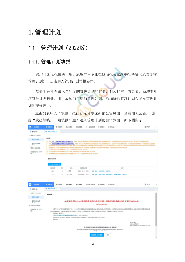 管理计划填报企业可以在线填报及审批备案《危险废物管理计划》。首次提交需生态环境局审核,之后变更无需审核,自动生效。