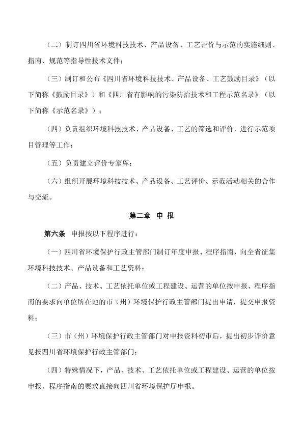 各市(州)环境保护局,有关部门: 为了促进环境科学技术进步,鼓励采用技术先进、合理的环境保护实用技术,防止环境污染和生态破坏,建立健全环境科技技术、产品设备、工艺评价与示范发布制度,根据《中华人民共和国环境保护法》、《中华人民共和国大气污染防治法》、《中华人民共和国促进科技成果转化法》、《关于增强环境科技创新能力的若干意见》和《国家环境保护技术评价与示范管理办法》等法规的有关规定,我厅制定了《四川省环境科技技术和产品设备工艺评价与示范管理办法(试行)》.现予以发布,请遵照执行。 附件:四川省环境科技技术和产品设备工艺评价与示范管理办法(试行) 二〇一一年一月二十七日