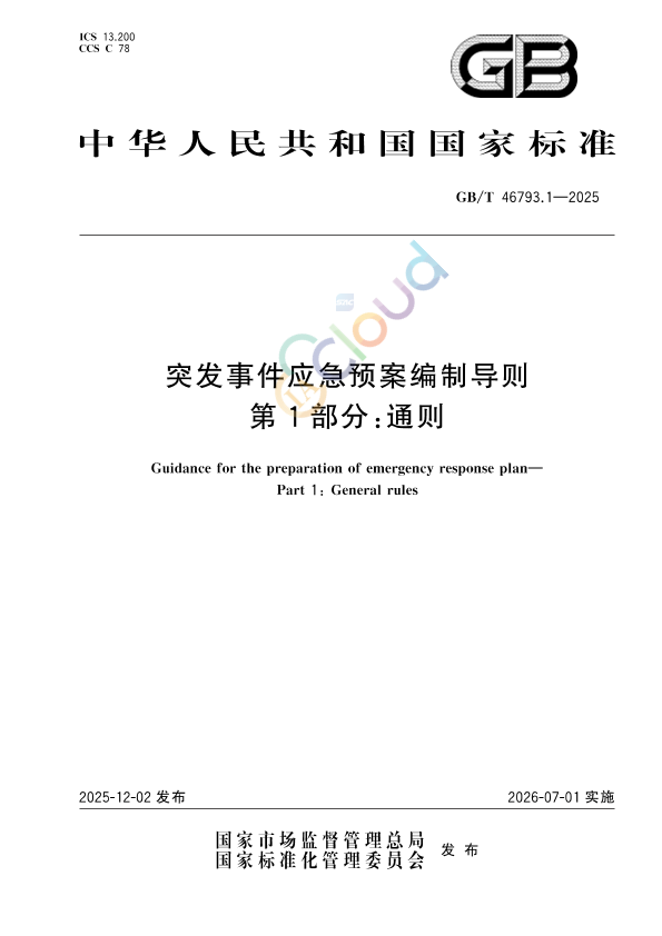 本文件确立了突发事件应急预案的编制原则,规定了应急预案分类、编制流程和编制内容。 本文件适用于政府及其部门、单位和基层组织突发事件应急预案编制工作。