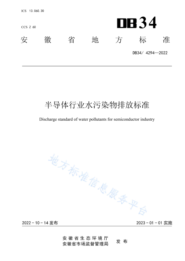 本文件规定了半导体企业的水污染物排放标准限值、监测要求、达标判定、实施与监督。 本文件适用于半导体企业的水污染物排放管理、排污许可管理、建设项目环境影响评价、建设项目环境保护设施设计、建设项目竣工环境保护验收及其投产后的污染控制与管理。
