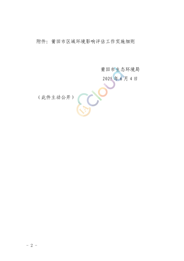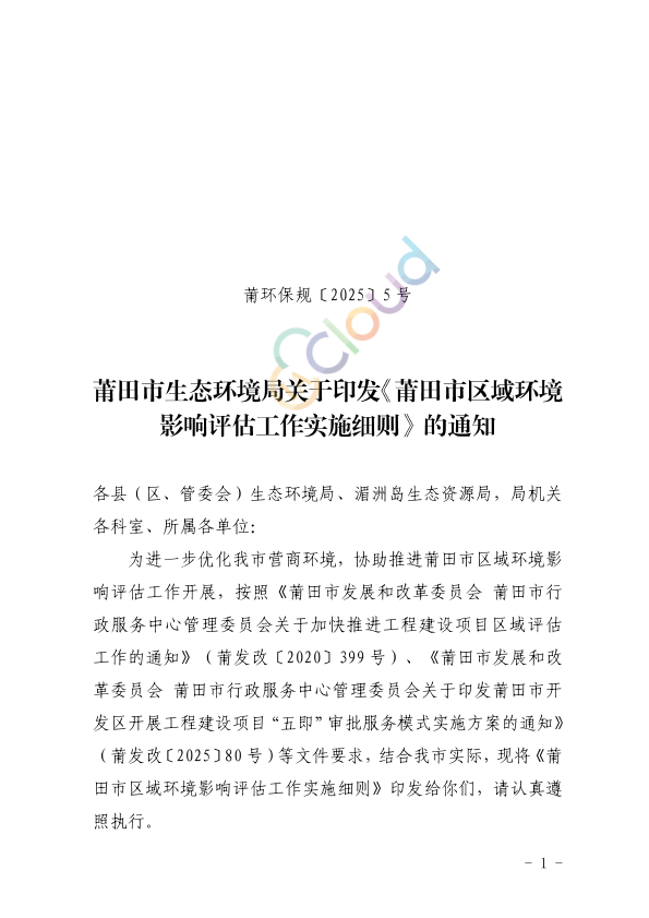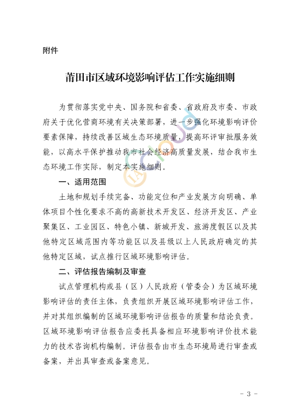 各县(区、管委会)生态环境局、湄洲岛生态资源局,局机关各科室、所属各单位: 为进一步优化我市营商环境,协助推进莆田市区域环境影响评估工作开展,按照《莆田市发展和改革委员会 莆田市行政服务中心管理委员会关于加快推进工程建设项目区域评估工作的通知》(莆发改〔2020〕399号)、《莆田市发展和改革委员会 莆田市行政服务中心管理委员会关于印发莆田市开发区开展工程建设项目“五即”审批服务模式实施方案的通知》(莆发改〔2025〕80号)等文件要求,结合我市实际,现将《莆田市区域环境影响评估工作实施细则》印发给你们,请认真遵照执行。 附件:莆田市区域环境影响评估工作实施细则 莆田市生态环境局 2025年6月4日