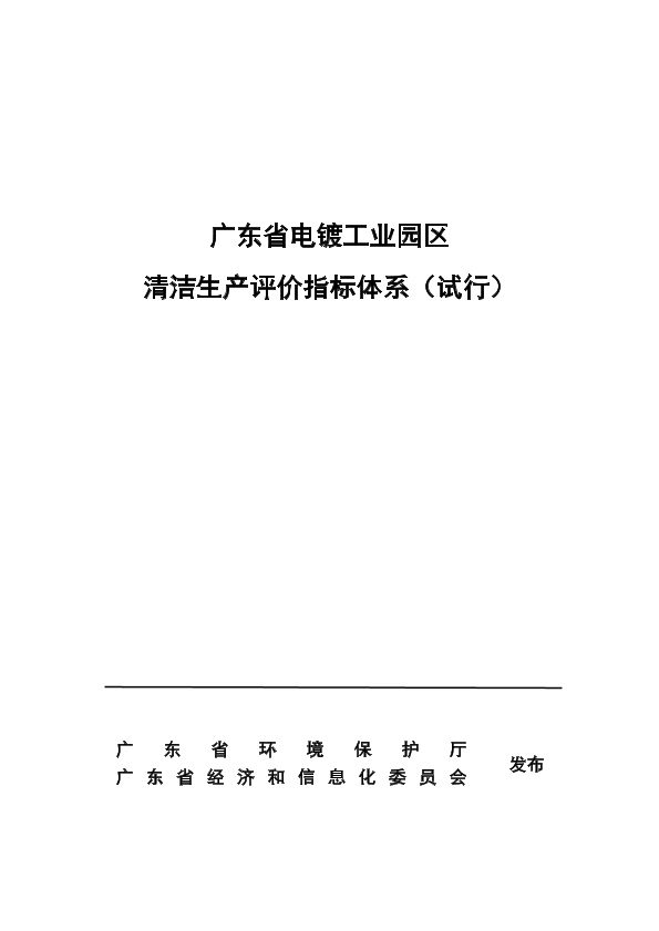 为贯彻《中华人民共和国环境保护法》和《中华人民共和国清洁生产促进法》,指导和推动我省电镀工业园区实施清洁生产,提高资源利用率,减少和避免污染物的产生,保护和改善环境,制定本指标体系。 本指标体系依据综合评价所得分值将清洁生产等级划分为三级,Ⅰ级为省内清洁生产领先水平;Ⅱ级为省内清洁生产先进水平;Ⅲ级为省内清洁生产基本水平。随着技术的不断进步和发展,本评价指标体系将适时修订。 本指标体系起草单位:广东省环境科学研究院、广东省电镀行业协会、江门市崖门新财富环保工业有限公司、揭阳市表面处理生态工业园有限公司、广东省环境科学学会。 本指标体系由广东省环境保护厅、广东省经济和信息化委员会负责解释。