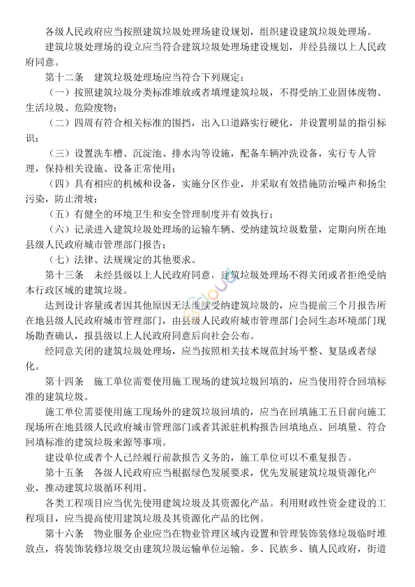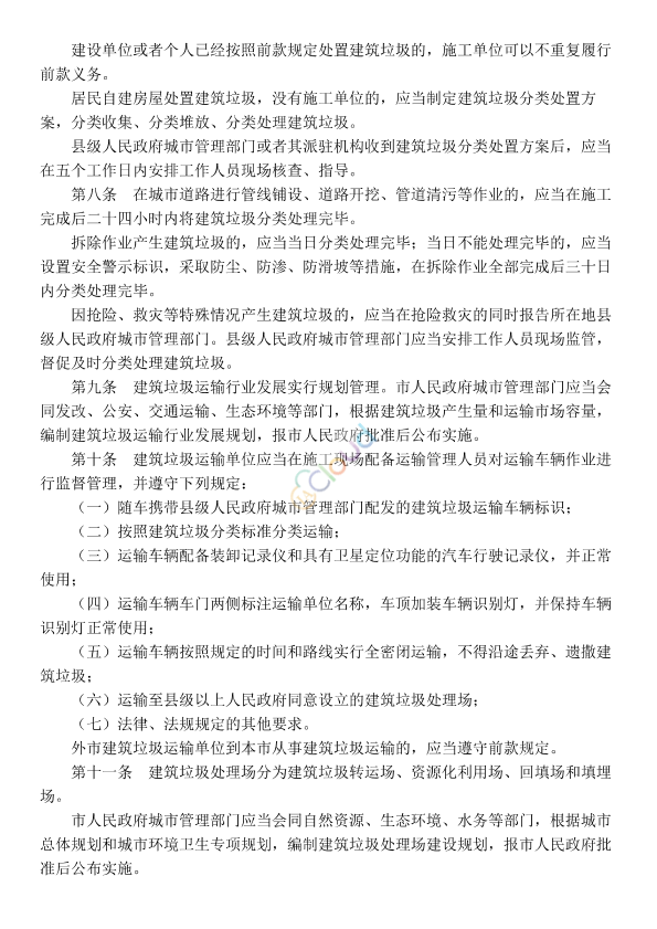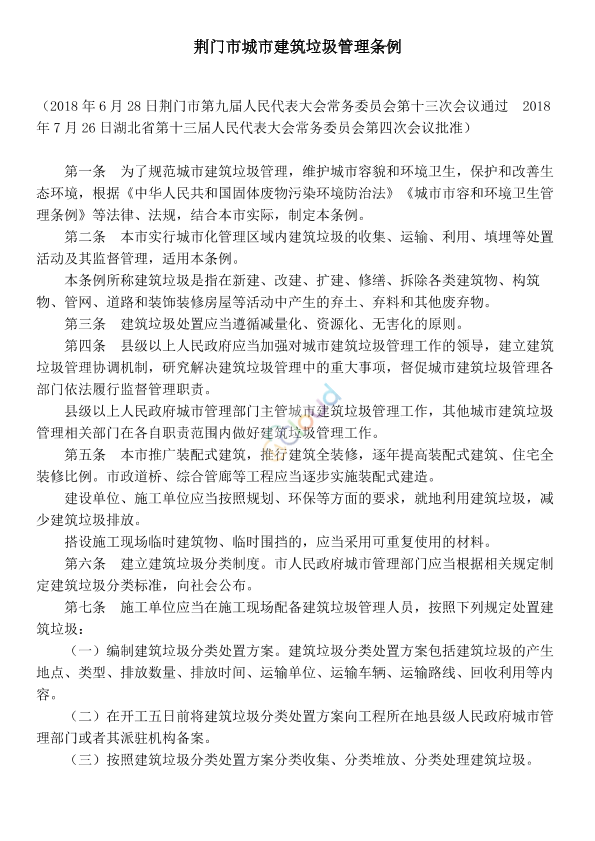 适用于荆门市城市化区域内建筑垃圾的收集、运输、利用、填埋等处置活动。