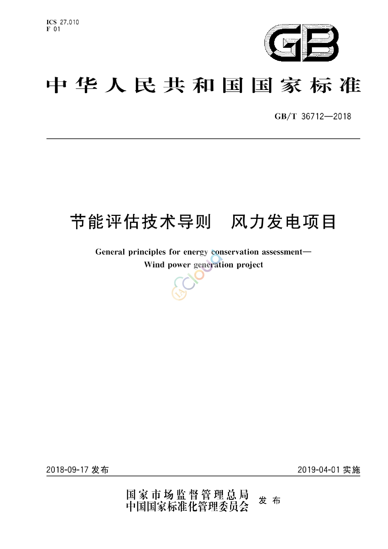 本标准规定了风力发电项目节能评估内容和要求。 本标准适用于新建或改、扩建风力发电项目,包括陆上、海上及潮间带项目的节能评估。