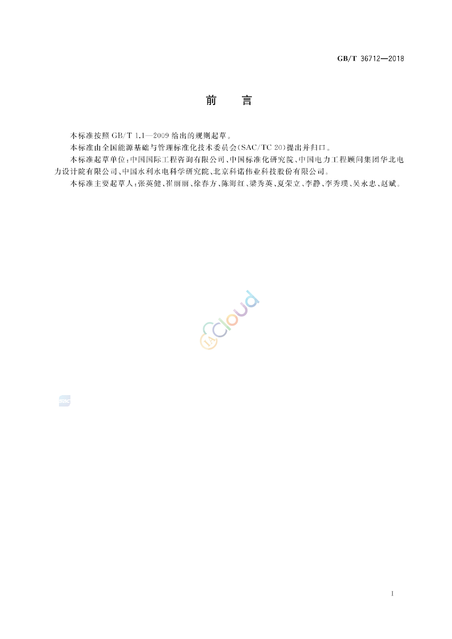 本标准按照GB/T1.1——2009给出的规则起草。 本标准由全国能源基础与管理标准化技术委员会(SAC/TC 20)提出并归口。 主要起草单位:中国国际工程咨询有限公司 、中国标准化研究院 、中国电力工程顾问集团华北电力设计院有限公司 、中国水利水电科学研究院 、北京科诺伟业科技股份有限公司 。 主要起草人:张英健 、崔丽丽 、徐春方 、陈海红 、梁秀英 、夏荣立 、李静 、李秀璞 、吴永忠 、赵斌 。