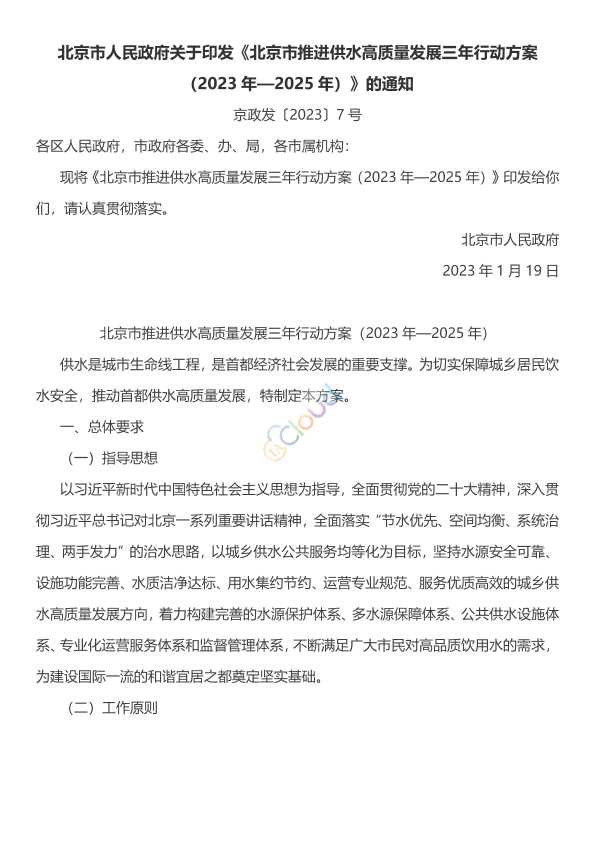 北京市人民政府关于印发《北京市推进供水高质量发展三年行动方案(2023年-2025年)》的通知.pdf