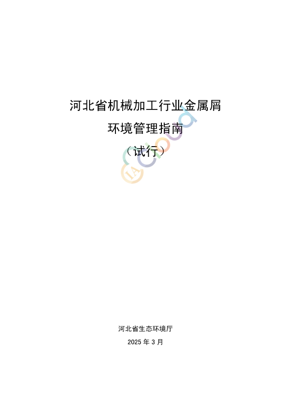 本指南适用于河北省行政区域内机械加工行业产生、收集、除油、贮存、转移、利用金属屑相关单位的环境管理,可作为生态环境主管部门环境监管参考依据。