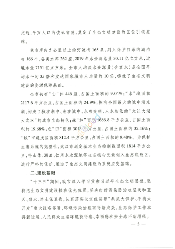 各区人民政府,市人民政府各部门: 经研究,现将《武汉市创建国家生态文明建设示范市规划纲要》印发给你们,请认真组织实施。 武汉市人民政府 2021年8月7日