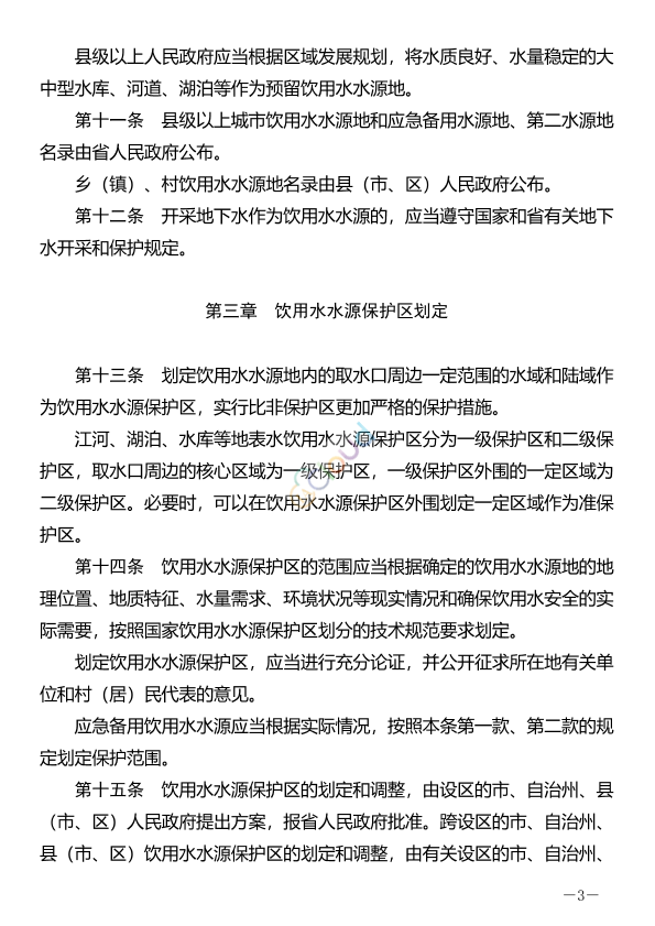为了加强饮用水水源保护,保障饮用水安全,维护人民群众身体健康,根据《中华人民共和国水污染防治法》《中华人民共和国水法》和其他有关法律、行政法规的规定,结合本省实际,制定本条例。