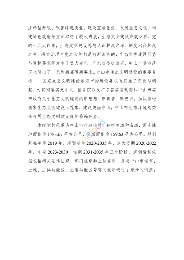 火炬开发区管委会,翠亨新区管委会,各镇政府、街道办事处,市各相关单位: 经中山市人民政府同意,现将《中山市生态文明建设规划(修编)(2020-2035年)》印发给你们,请认真贯彻实施,实施中遇到的问题,请径向市生态环境局反映。 中山市生态环境局 2021年4月27日