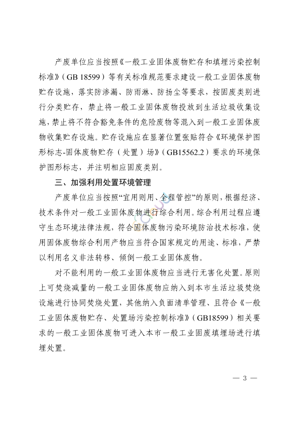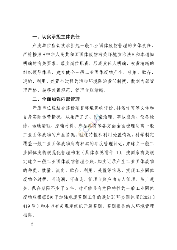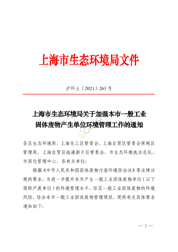 各区生态环境局,上海化工区管委会,上海自贸区管委会保税区管理局,上海自贸区临港新片区管委会,市生态环境执法总队,市固化管理中心,各有关单位: 根据《中华人民共和国固体废物污染环境防治法》等法律法规的要求,为进一步提升本市产生一般工业固体废物单位(以下简称产废单位)的环境管理水平,防范一般工业固体废物的环境风险,结合本市一般工业固体废物管理现状,现将有关具体要求通知如下: