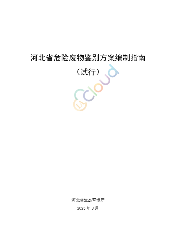 指南规定了河北省危险废物鉴别方案编制工作遵循的原则、程序、内容和技术要求。突发环境事件、污染地块治理与修复过程涉及的危险废物鉴别方案编制可参照执行。