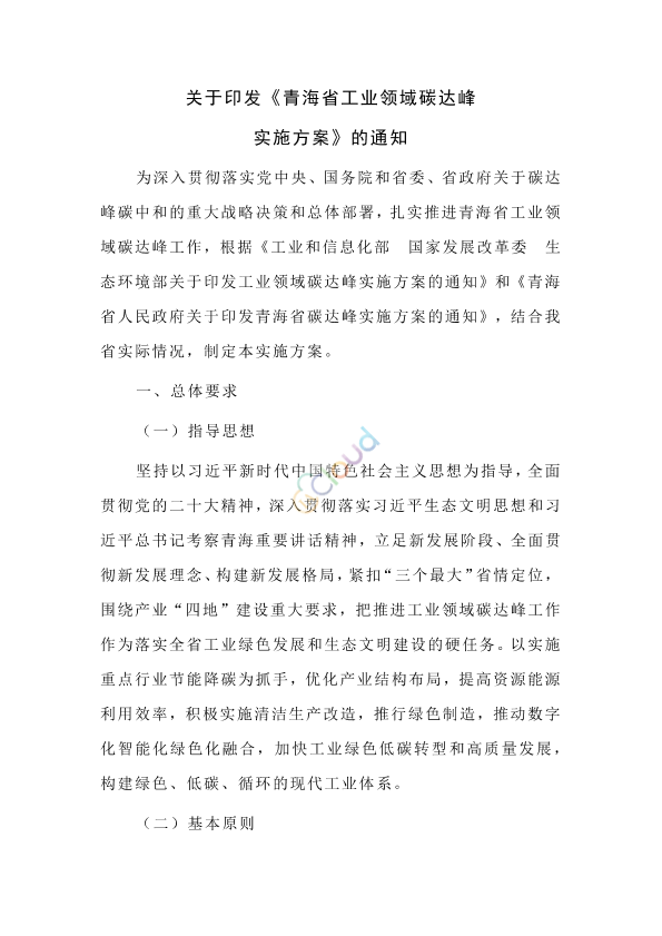 为深入贯彻落实党中央、国务院和省委、省政府关于碳达峰碳中和的重大战略决策和总体部署,扎实推进青海省工业领域碳达峰工作,根据《工业和信息化部 国家发展改革委 生态环境部关于印发工业领域碳达峰实施方案的通知》和《青海省人民政府关于印发青海省碳达峰实施方案的通知》,结合我省实际情况,制定本实施方案。