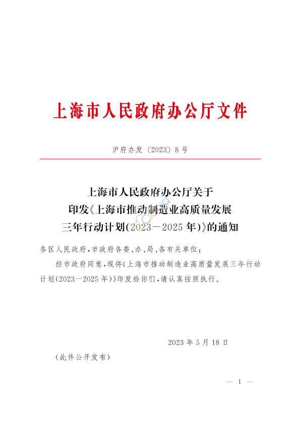 上海市人民政府办公厅关于印发《上海市推动制造业高质量发展三年行动计划(2023-2025年)》的通知.pdf