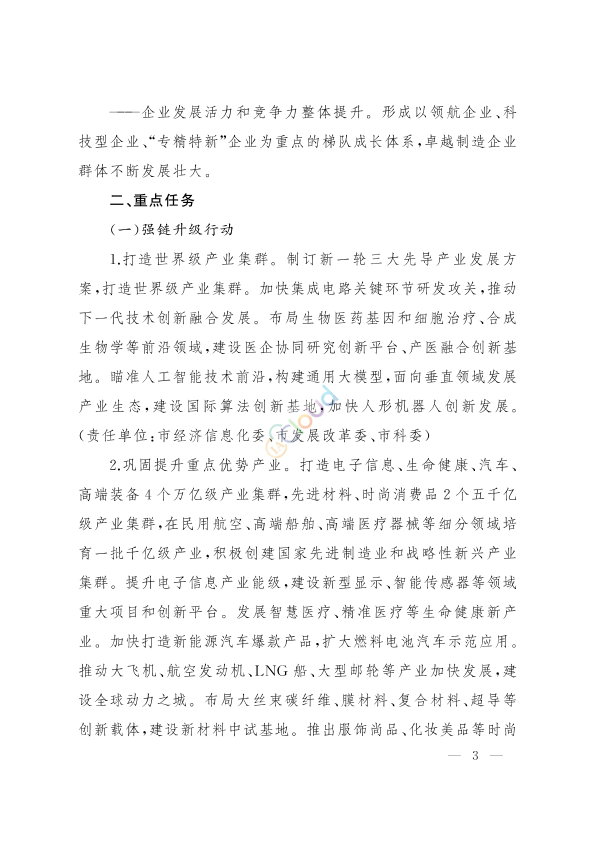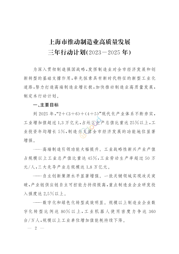 上海市推动制造业高质量发展三年行动计划(2023•2025年)概览