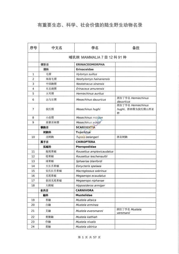 按照《野生动物保护法》第十条规定,我局制定了《有重要生态、科学、社会价值的陆生野生动物名录》,经征求农业农村、自然资源、科学技术、生态环境、卫生健康等部门意见,并组织科学论证评估,现予以公布,自公布之日起施行。 人工繁育有重要生态、科学、社会价值的陆生野生动物的,应当依法及时办理备案手续;本公告发布前已经开展人工繁育有重要生态、科学、社会价值的陆生野生动物活动的,应当于2023年9月30日前依法办理备案手续。 特此公告。 国家林业和草原局 2023年6月26日