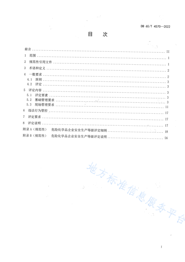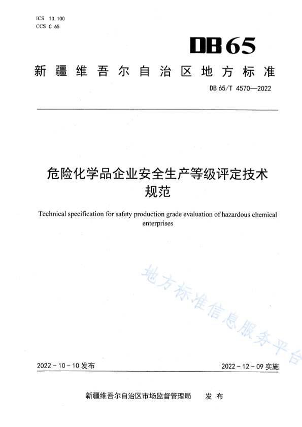 本文件规定了自治区危险化学品企业安全生产等级评定技术的术语和定义、一般要求、评定内容、违法行为管控、评定要求、评定说明。 本文件适用于自治区危险化学品企业安全生产等级的划分与评定。