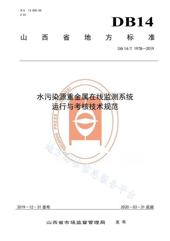 本标准规定了水污染源重金属在线监测系统运行与考核的术语和定义、运行单位及人员要求、仪器运行管理及参数设置要求、采样、分析及数据上报要求、检查维护要求、运行技术质量控制要求、检修和故障处理要求、运行考核及比对监测要求和档案与记录要求。 本标准适用于山西省境内水污染源重金属在线监测系统运行与考核。