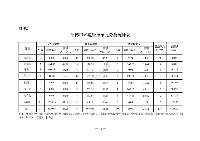 • 环境管控单元以行政区域为基础划分,高新区、经济开发区等特殊区域按原所属行政区归类(如张店区、淄川区等)。