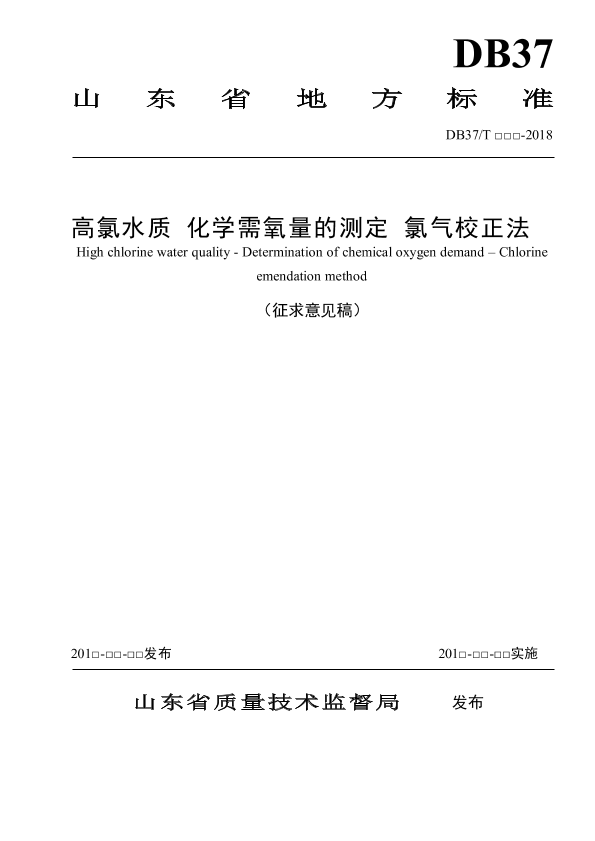 本标准规定了高氯水质中化学需氧量的测定方法。 本标准适用于氯离子小于 30000 mg/L 的地表水、生活污水及工业废水等高氯水质化学需氧量(COD)的测定。 方法的检出限为 4 mg/L,方法的测定下限为 16 mg/L。