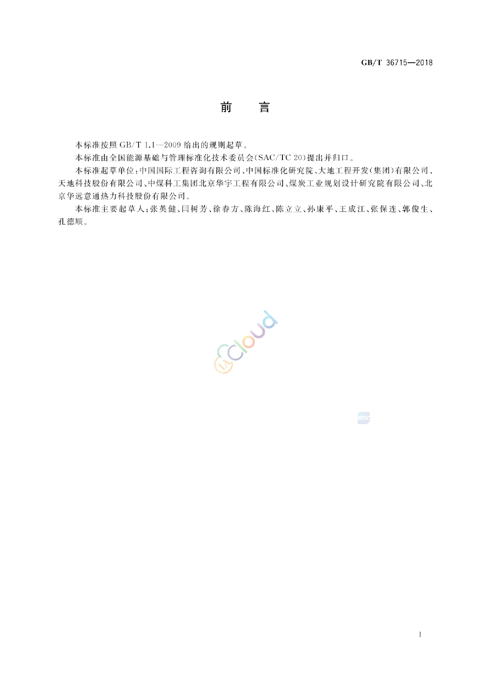本标准按照GB/T 1.1—2009给出的规则起草。 本标准由全国能源基础与管理标准化技术委员会(SAC/TC20)提出并归口。 主要起草单位:中国国际工程咨询有限公司 、中国标准化研究院 、大地工程开发(集团)有限公司 、天地科技股份有限公司 、中煤科工集团北京华宇工程有限公司 、煤炭工业规划设计研究院有限公司 、北京华远意通热力科技股份有限公司 。 主要起草人:张英健 、闫树芳 、徐春方 、陈海红 、陈立立 、孙康平 、王成江 、张保连 、郭俊生 、孔德顺 。