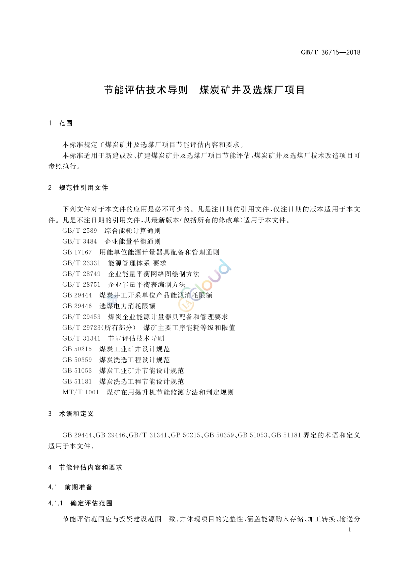 本标准规定了煤炭矿井及选煤厂项目节能评估内容和要求。 本标准适用于新建或改,扩建煤炭矿井及选煤厂项目节能评估,煤炭矿井及选煤厂技术改造项目可参照执行。