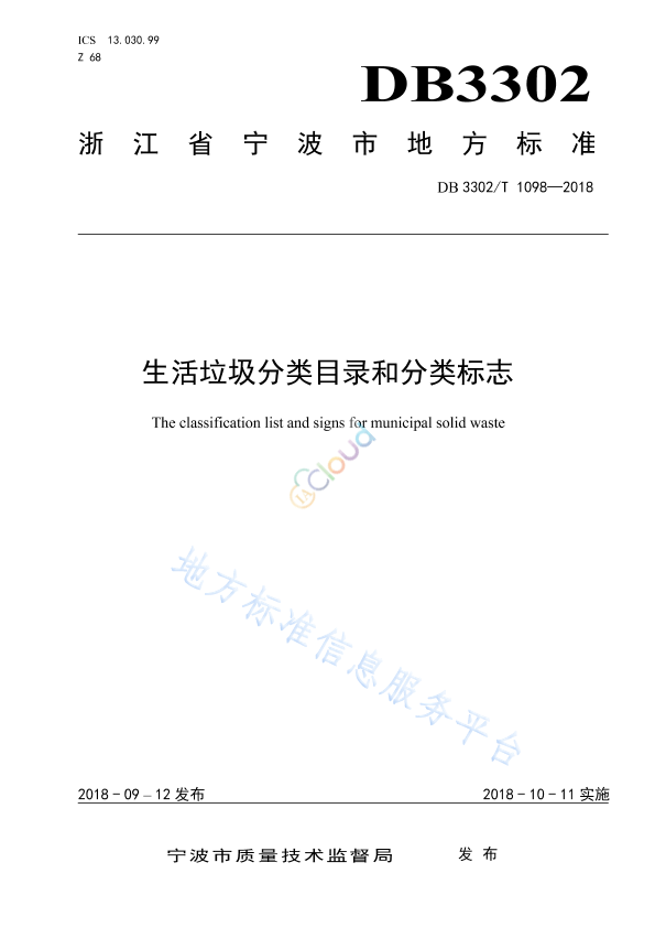 本标准规定了生活垃圾分类目录和分类标志。 本标准适用于生活垃圾分类工作,也适用于有关产品的外包装、宣传物品与其他信息载体。