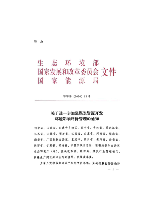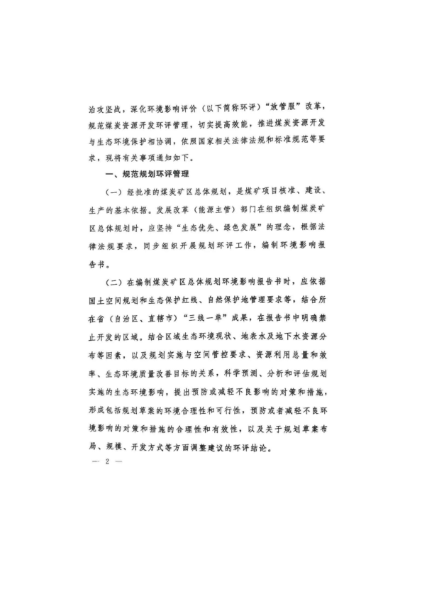为深入贯彻落实习近平生态文明思想,坚决打赢打好污染防治攻坚战,深化环境影响评价(以下简称环评)“放管服”改革,规范煤炭资源开发环评管理,切实提高效能,推进煤炭资源开发与生态环境保护相协调,依照国家相关法规和标准规范等要求,现将有关事项通知如下。