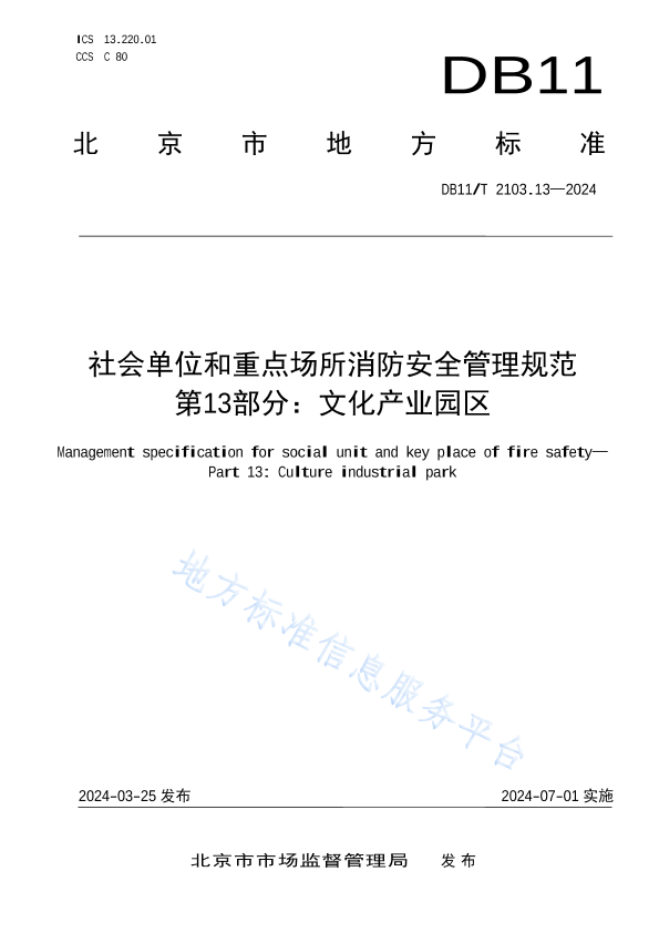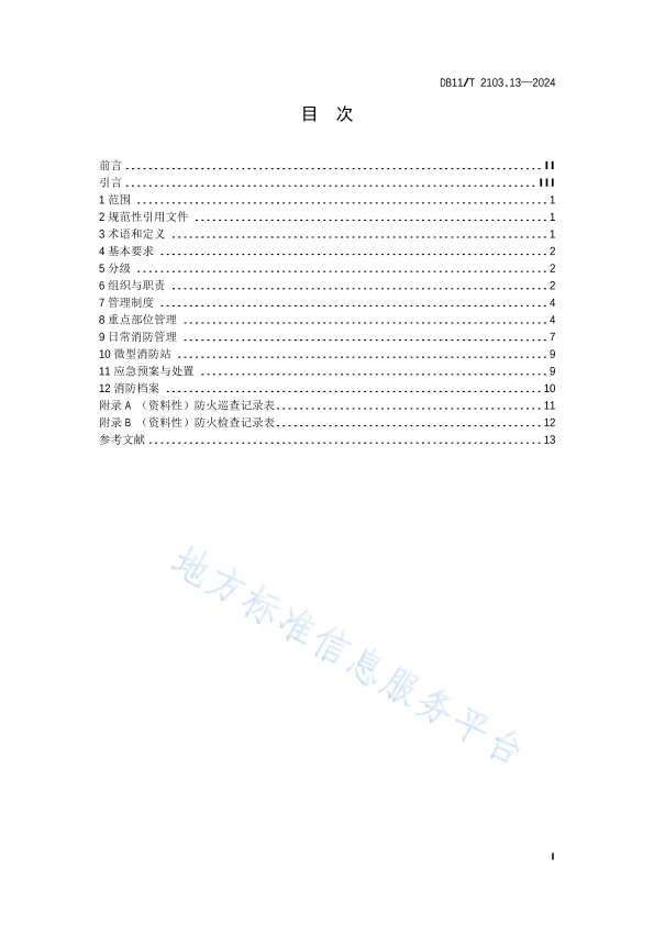 本文件按照GB/T 1.1—2020《标准化工作导则 第1部分:标准化文件的结构和起草规则》的规定起草。 本文件为DB11/T 2103《社会单位和重点场所消防安全管理规范》的第13部分,DB11/T2103已经发布以下部分: ——第1部分:通则; ——第2部分:养老机构; ——第3部分:社区养老服务驿站; ——第4部分:大型商业综合体; ——第5部分:城市轨道工程施工现场; ——第6部分:密室逃脱类场所; ——第13部分:文化产业园区。 本文件由北京市消防救援总队提出并归口。 本文件由北京市消防救援总队组织实施。 本文件起草单位:北京市朝阳区消防救援支队、中国建筑科学研究院有限公司。 本文件主要起草人:魏毅宇、刘爱英、舒畅、刘世权、李瑛琦、辛劭波、刘振洋、谢大勇、李磊、詹子娜、张文斌。