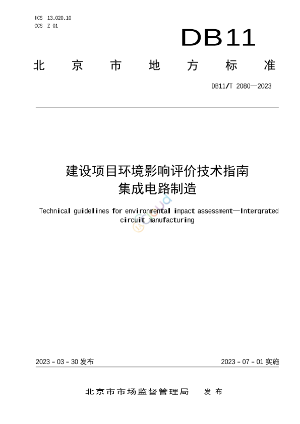 本文件给出了集成电路制造建设项目环境影响评价的一般规定、技术要求和编制要求。 本文件适用于集成电路制造建设项目环境影响评价和技术评估工作。