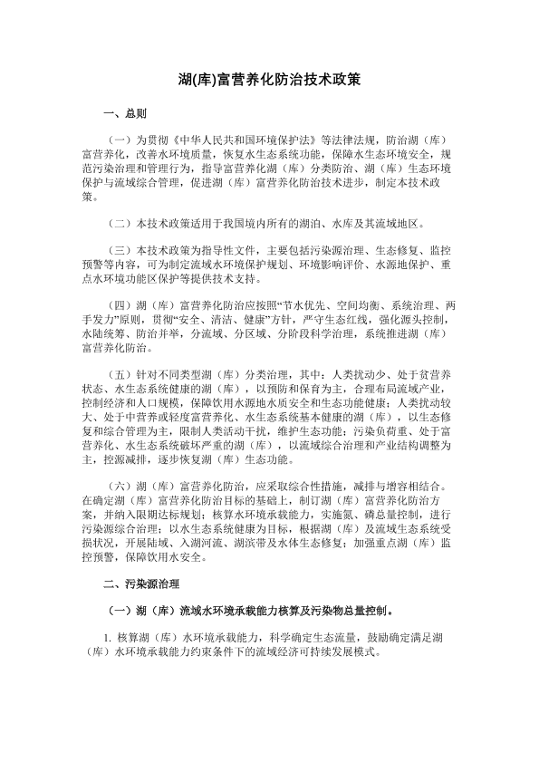 附件:湖(库)富营养化防治技术政策