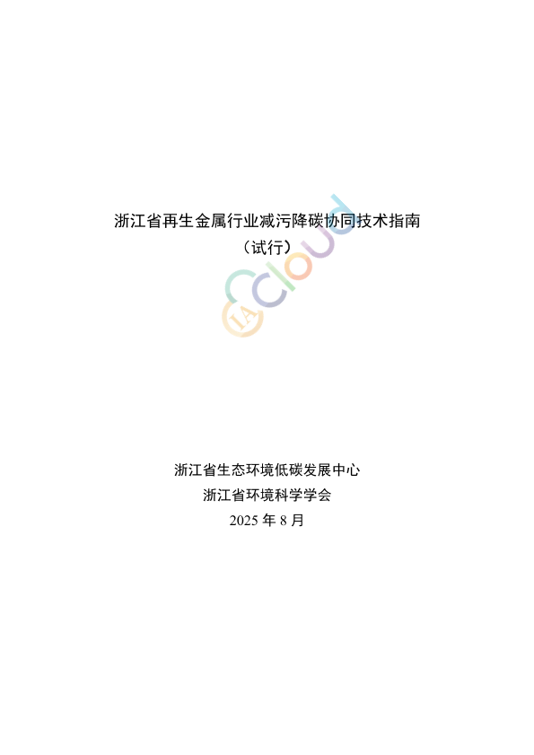 本指南适用于再生金属行业企业减污降碳协同技术参考。