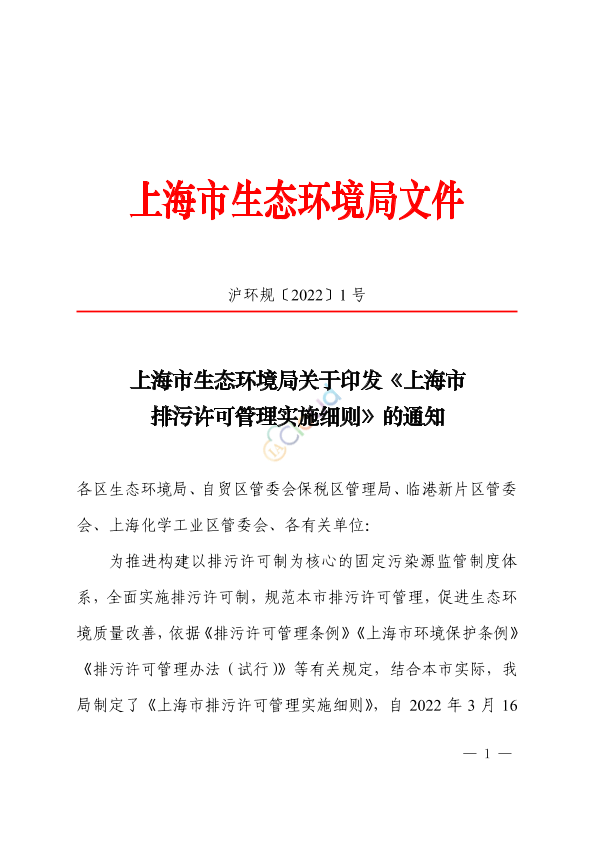 各区生态环境局、自贸区管委会保税区管理局、临港新片区管委会、上海化学工业区管委会、各有关单位: 为推进构建以排污许可制为核心的固定污染源监管制度体系,全面实施排污许可制,规范本市排污许可管理,促进生态环境质量改善,依据《排污许可管理条例》《上海市环境保护条例》《排污许可管理办法(试行)》等有关规定,结合本市实际,我局制定了《上海市排污许可管理实施细则》,自2022年3月16日起实施。现印发给你们,请遵照执行。 上海市生态环境局 2022年2月10日