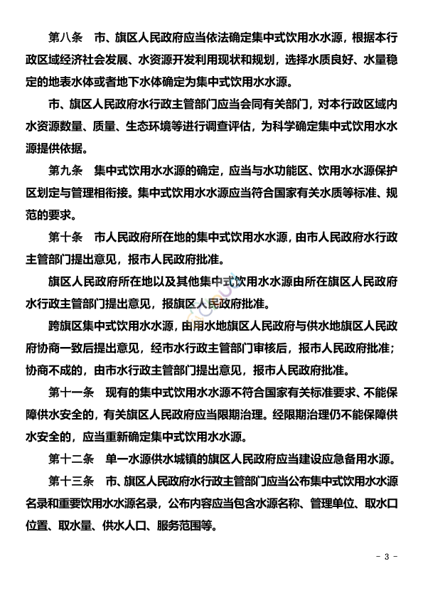 为了加强集中式饮用水水源保护,保障饮用水安全,维护公众身体健康,根据《中华人民共和国环境保护法》《中华人民共和国水污染防治法》《中华人民共和国水法》和《内蒙古自治区饮用水水源保护条例》等法律、法规,结合本市实际,制定本条例。